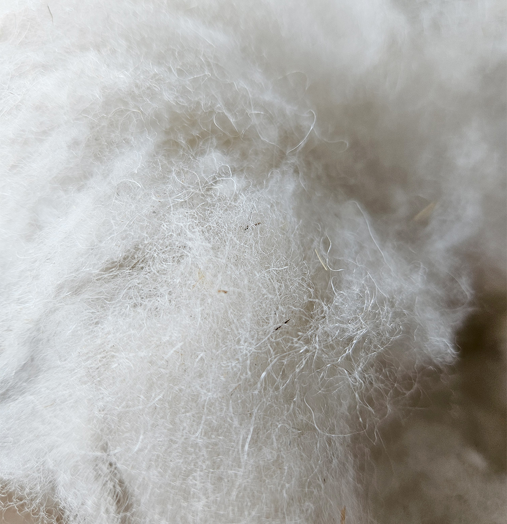 100g Rohwolle der Ouessantschafe in der Farbe weiß, nachhaltig von Hand gewaschen. Sie ist zum Spinnen, Filzen, Basteln, Füllen oder Stopfen geeignet. Die Wolle ist zum Teil gezupft aber nicht gekämmt und nicht kardiert.