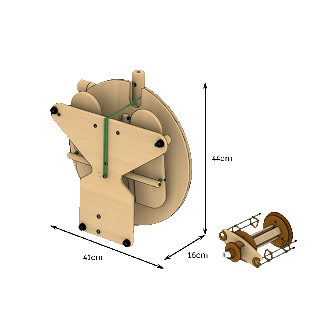 Das Buddy-Spinnrad besteht aus massiver Buche und laminierter Buche. Die Konstruktion lässt sich leicht selbst zusammenbauen.