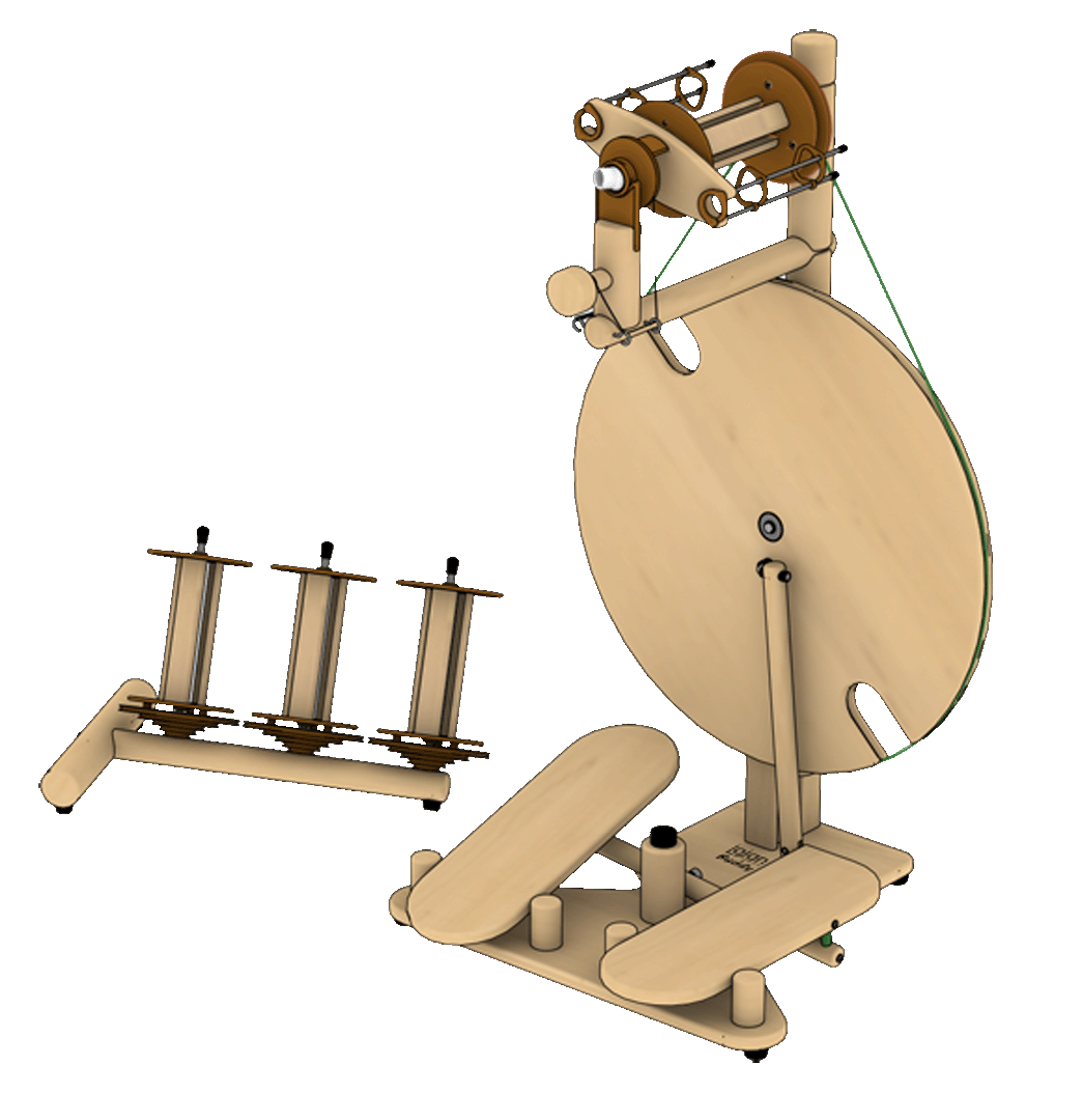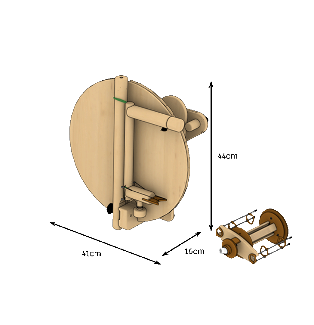 Das Spinnrad ist spulengeführt und hat ein aerodynamisches Design des Flügels, das Ihnen das Spinnen mit sehr geringem Zug auf das Garn ermöglicht.