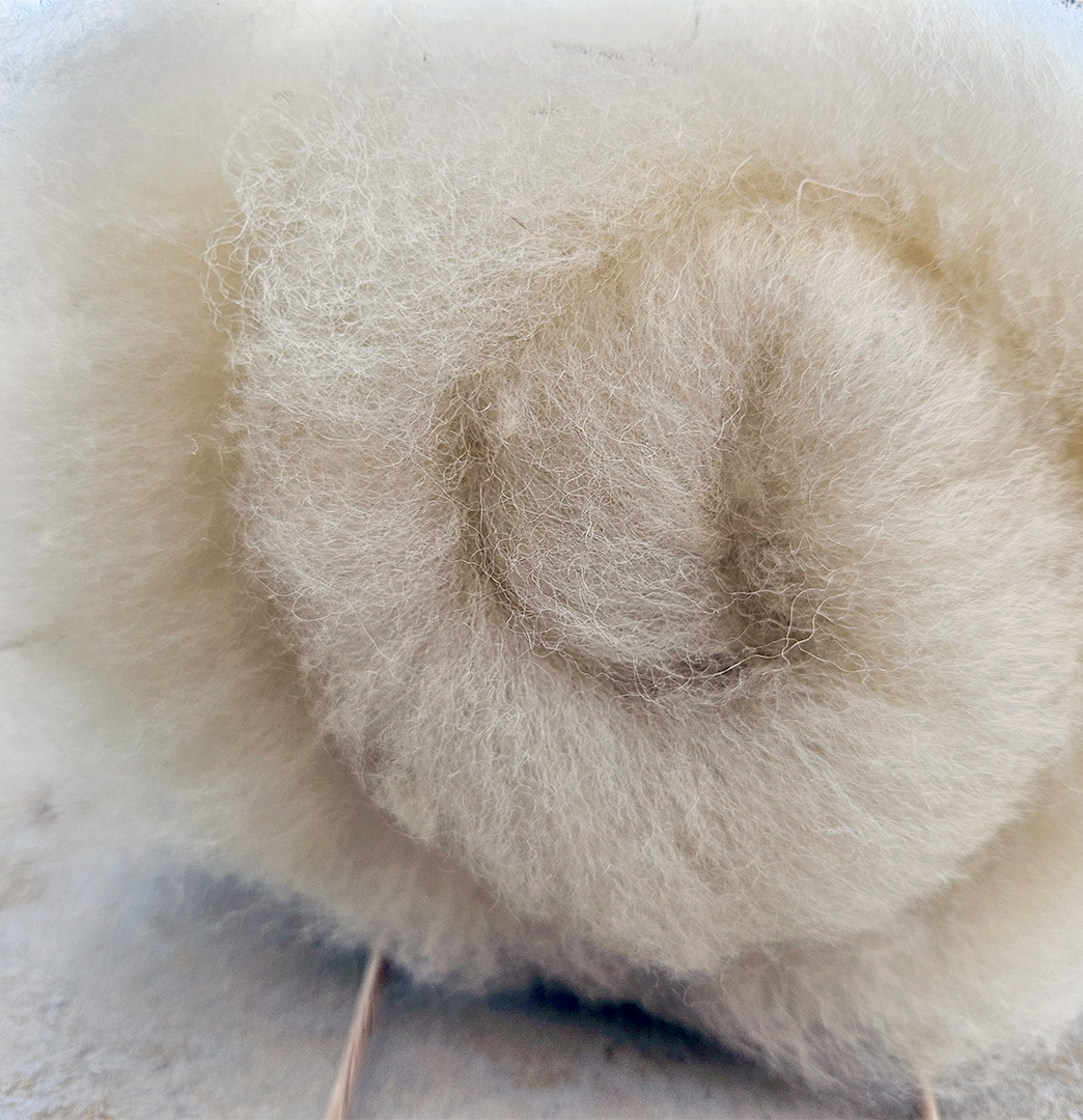 Die Rohwolle ist von Schäfern aus unserer Region der Schafrasse Suffolk und wurde nachhaltig und chemiefrei von Hand gewaschen.